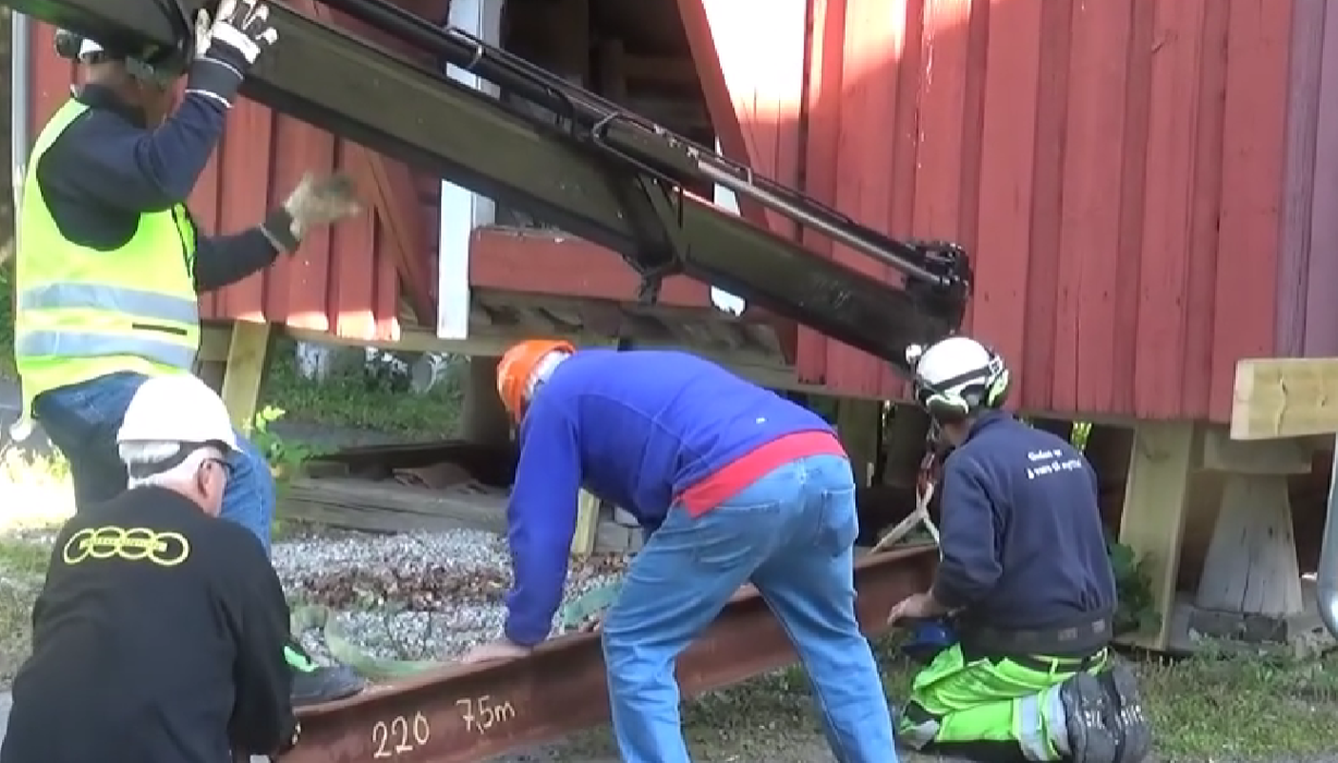 I dag 19. august 2024 skulle stabburet rettes opp, og kran var rekvirert. Imidlertid, ikke alt gikk som det skulle da stabburet skulle løftes opp, var det for tungt. Nytt forsøk vil bli gjort en annen dag. Det ble rett og slett for tungt for krana, som i utgangspunktet skulle kunne løfte mellom 16 og 50 tonn. Se bilder av Grunde Vale. Video og alle bildene kan du se på vår Facebook-side.