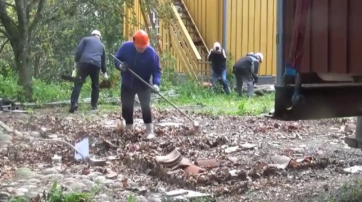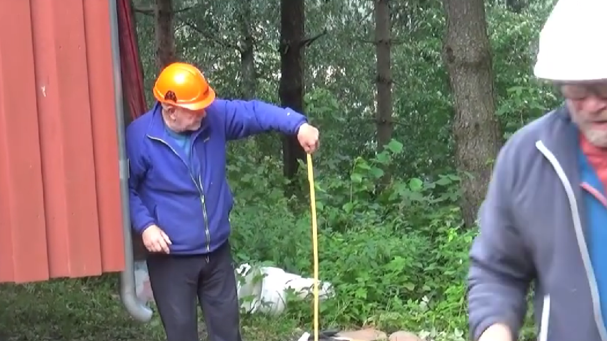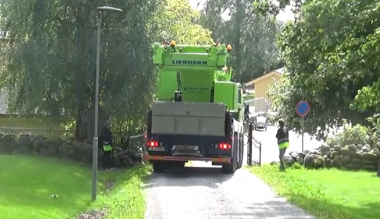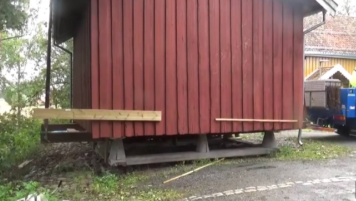 Stabburet er nå rettet opp. At man ikke klarte det mandag 19. august, skyldtes at krana ikke klarte løftet. I dag kom en kran fra Drammen (krana kjører 89/90 km i timen på landevei), og som kunne løfte 90 tonn - det måtte et løft på 20 tonn for å få gjort jobben. Vedlagt er noen bilder tatt av Grunde Vale og Christian Olsen fra jobben som ble gjort i dag mandag 26. august.